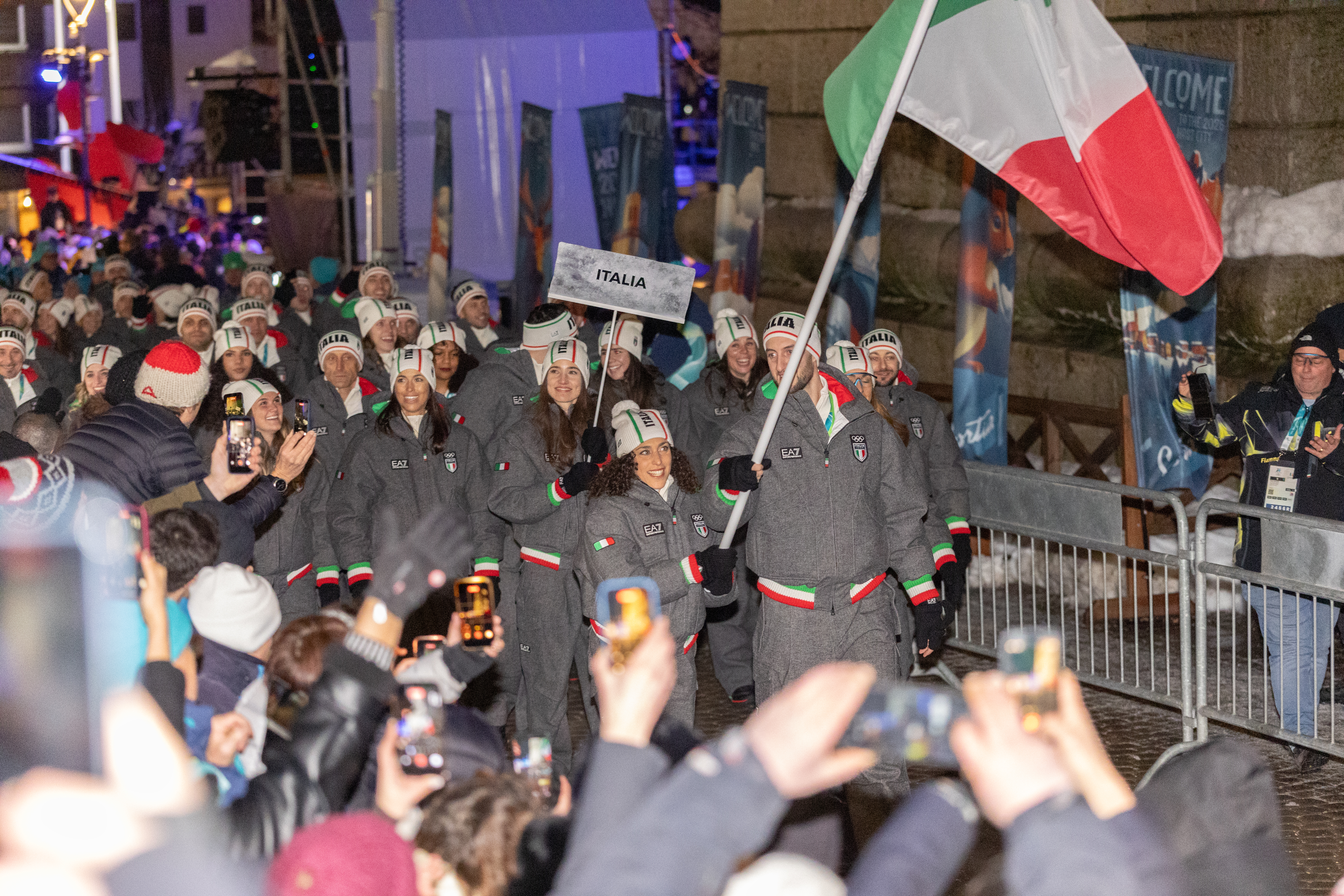 Davor waren die Athletinnen und Athleten aus 92 Ländern zeitgleich in Mailand ins San Siro Olympic Stadium eingelaufen während parallel dazu in Cortina eine Parade auf der Via del Mercato stattfand. Kleinere Feiern gab’s zudem in Predazzo und Livigno. Es war das erste Mal in der 130-jährigen Geschichte der Olympischen Spiele, dass an mehreren Orten gleichzeitig eine Eröffnungsfeier stattgefunden hat. Dafür stand auch das Motto „Armonia“ (Harmonie). Es sollte den dezentralen Charakter der Spiele widerspiegeln.